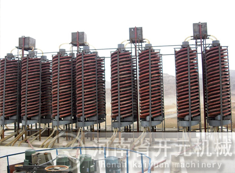 共有五臺(tái)φ2400×1800毫米圓錐形球磨機(jī),其中有四臺(tái)與φ2400×8000毫米靶式分級(jí)機(jī)構(gòu)成閉路,一臺(tái)球磨機(jī)與φ2000毫米高堰式單螺旋分級(jí)機(jī)構(gòu)成閉路。球磨機(jī)的處理量為17.5噸/臺(tái)·時(shí)。分級(jí)機(jī)溢流濃度為40~50%,粒度為50%-0.074毫米。
