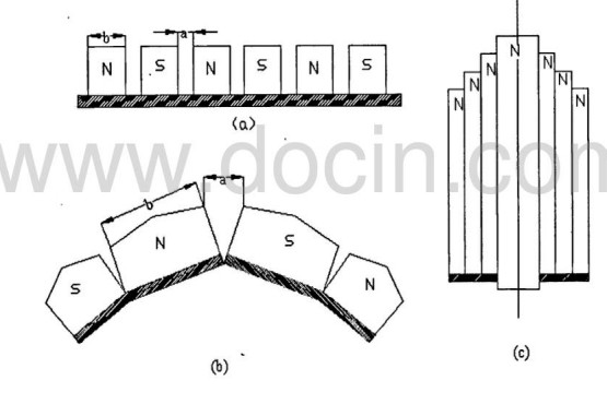 (a)平面磁系;(b)圓柱磁系;(c)塔形磁系;